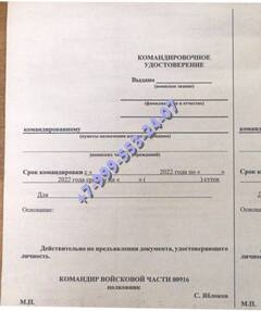 Заказать командировочное удостоверение военнослужащего в Лангепасе можно и по иным причинам, например, необходимо срочно ехать на учения или в зону боевых действий. В таком случае следует обращаться к руководству с заявлением. Если человек потерял, или испортил документы, он может обратиться в нашу компанию. Купить командировочное удостоверение военнослужащего с доставкой мы предлагаем недорого.