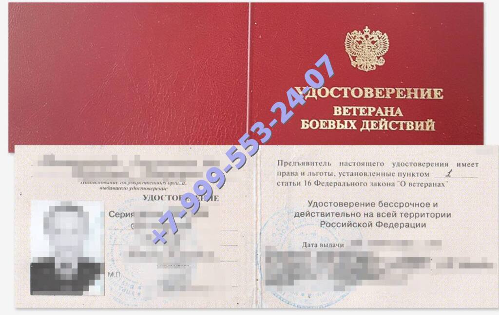 Удостоверение ветерана боевых действий 25000 руб + пересылка